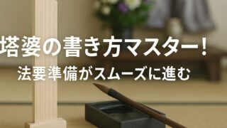 未分類 塔婆の書き方マスター!法要準備がスムーズに進む 大切なご供養の場で欠かせない塔婆。しかし、依頼方法や宗派ごとの違い、書き方の注意点などは意外と分かりにくく、初めて準備する方にとっては戸惑いが多いものです。本記事では、塔婆の基本的な意味から依頼の流れ、宗派ごとのマナー、費用相場、処分方法、... 未分類