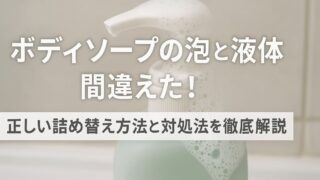 未分類 ボディソープの泡と液体を間違えた!正しい詰め替え方法と対処法を徹底解説 こんにちは。この記事では、「ボディソープの泡タイプと液体タイプを間違えて詰め替えてしまった!」というお悩みを、初心者の方にもわかりやすく丁寧に解説していきます。初めてボディソープの詰め替えをする方でも安心できるように、実際の失敗例や、間違え... 未分類